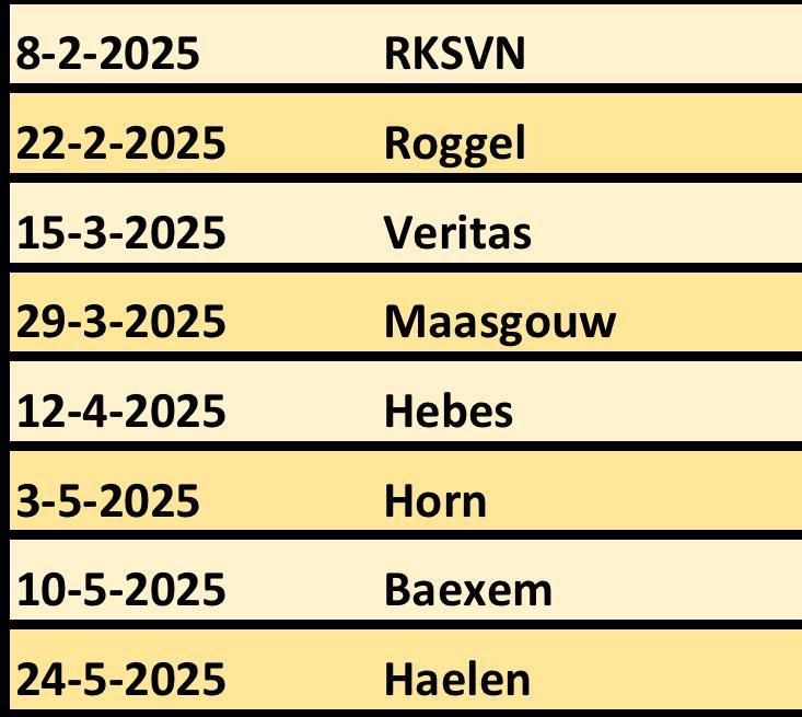 De planning van de toernooitjes JO07 (tot aan de zomerstop) is als volgt: